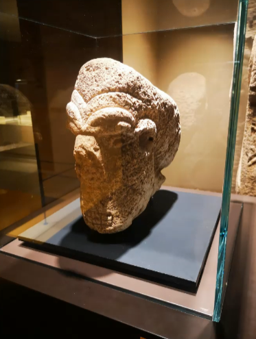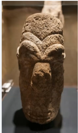 Ancient stone artifact depicting the head of Enlil from ancient eyewitness accounts from the ancient Sumerian culture currently sitting in their local museum